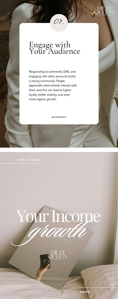 You also get post templates and story slide templates designed to drive traffic into these funnels without breaking the premium tone. Every asset aligns. Every touchpoint reinforces authority.
