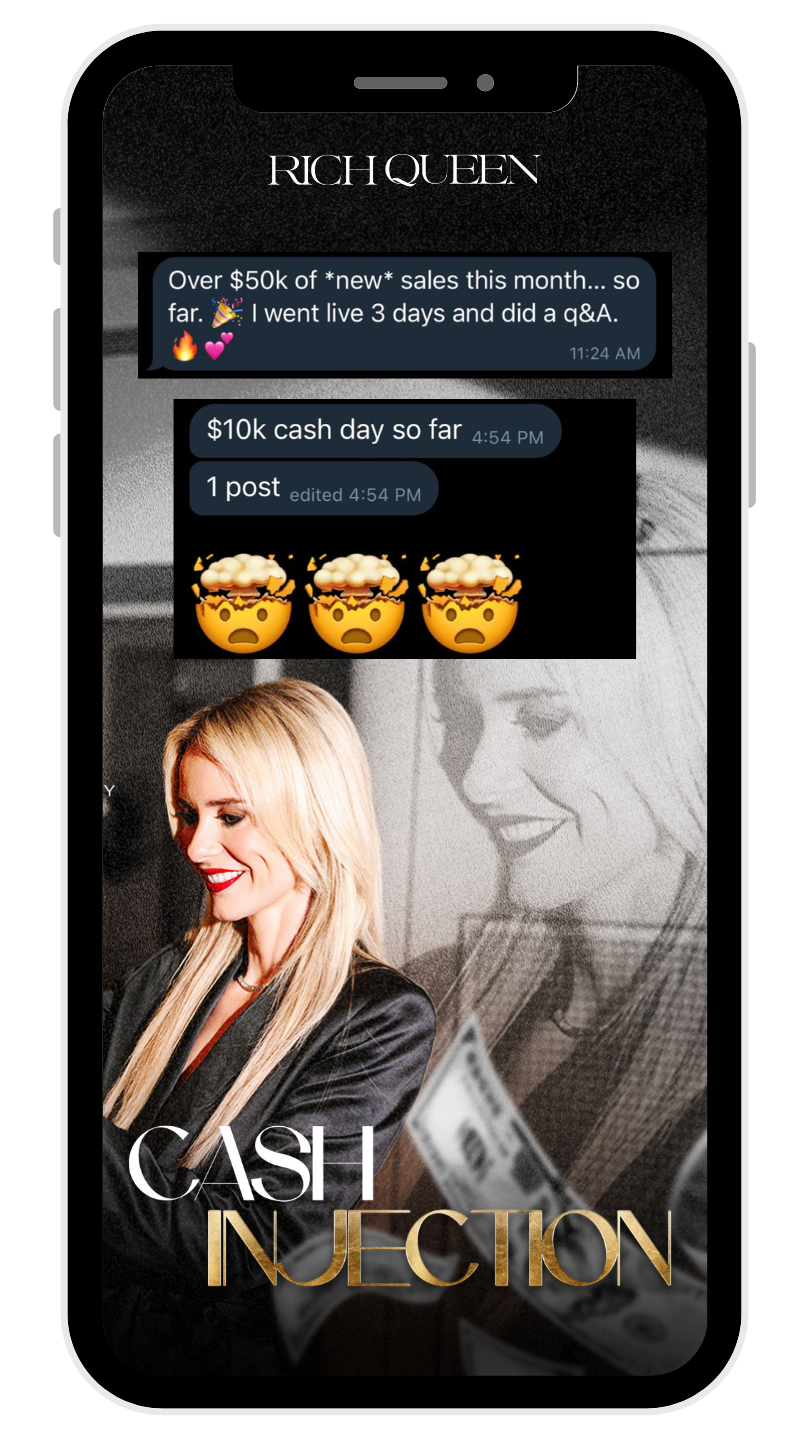 You recognize and agree that nobody and nothing part of the Rich Queen brand has made any implications, warranties, promises, suggestions, projections, representations, or guarantees whatsoever to you about future earnings, or that you will earn any money, with respect to your purchase of Rich Queen programs, courses, trainings, masterclasses or coaching and that we have not authorized any such implication, promise or representation by others. There are no guarantees of results or future earnings. There are no refunds. All sales are final.