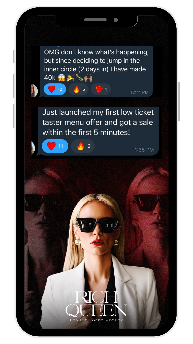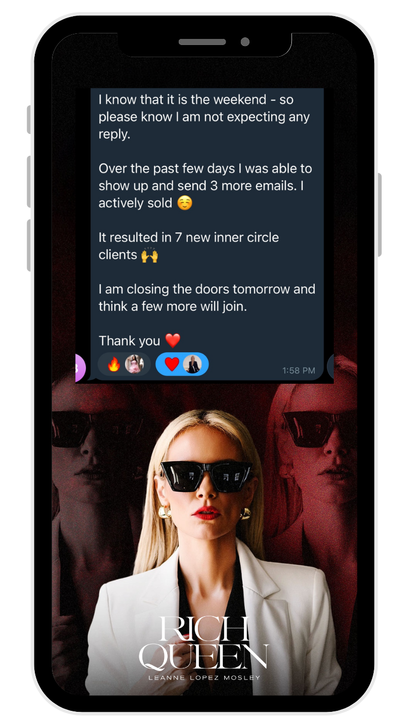 You’re one decision away from the feminine systems, strategies, and support that have created $22M in the last 18 months for Rich Queen & over $120M in client results.Â